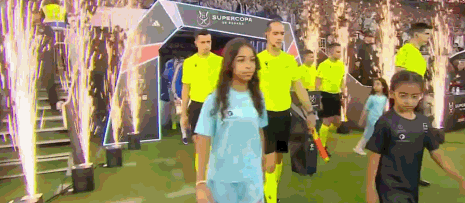 双方球员入场,比赛马上开始