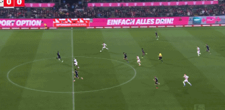 第84分钟,凯恩后场长传,迪亚斯横传助攻卡尔低射破门!科隆1-3拜仁